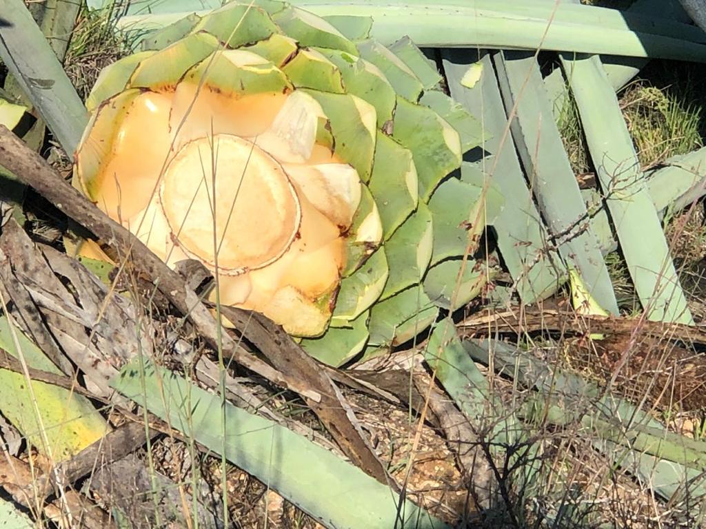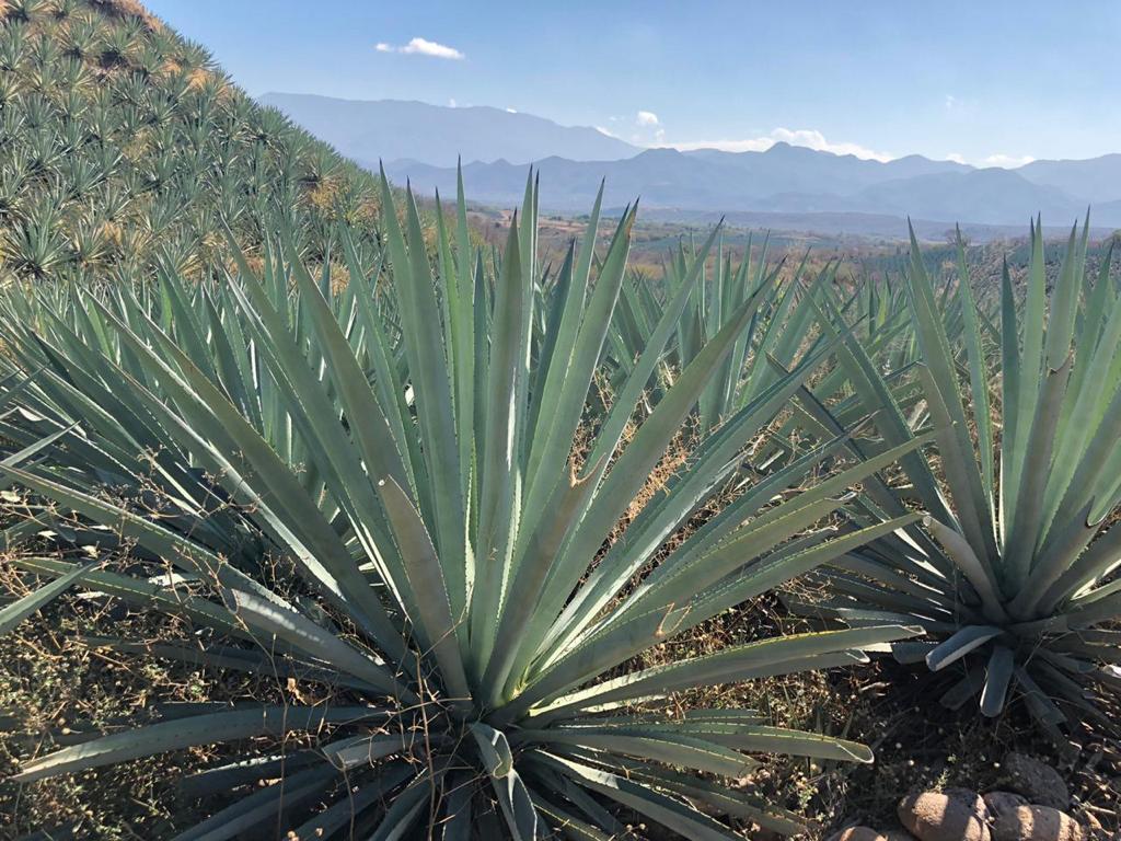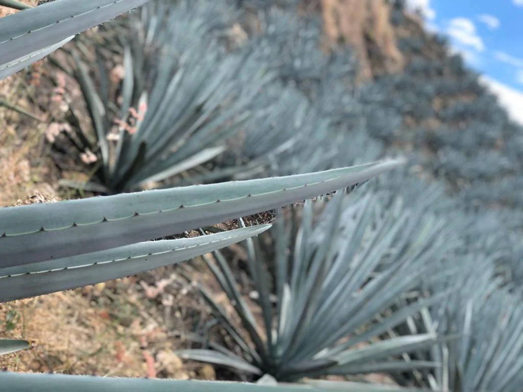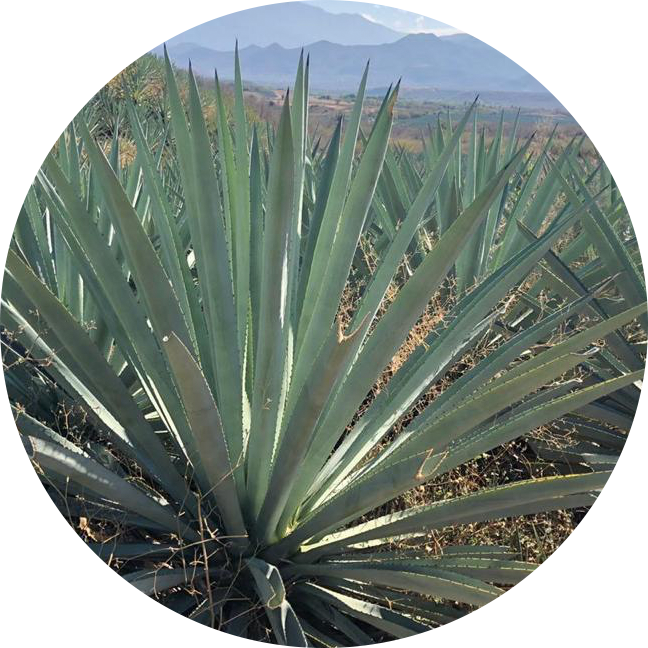 The cuishe (karwinsky) is a micro-endemic wild agave, since its distribution began it has been reduced to 132 square km around the world. It is born in limestone soils with little rainfall and reaches maturity at 12 years. This ensemble preserves the aromas of huisaches, pines and oaks that abound in the area, as well as a light mineral perfume with floral notes provided by the cuishe ensemble. Its robust and grassy character is appreciated in its flavor. In our design, we have reflected the combination of the leaves of these two agaves: the uniformity of the leaves of the cultivated espadin agave but also the robust touch and strength of the wild cuishe.